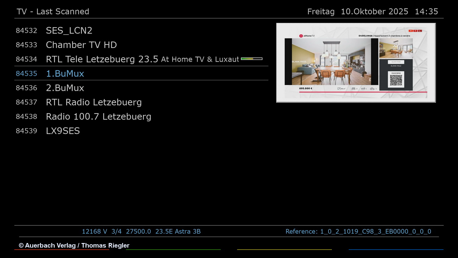 Die beiden deutschen Bundesmuxe DR Deutschland und Antenne DE sind auf Astra 23,5 Grad Ost zu finden. Sie gehören zu den Paketen, die auch vom Sat-Receiver gefunden werden. In der Senderliste tauchen sie als „1. BuMux“ und „2. BuMux“ auf. Die Parameter: