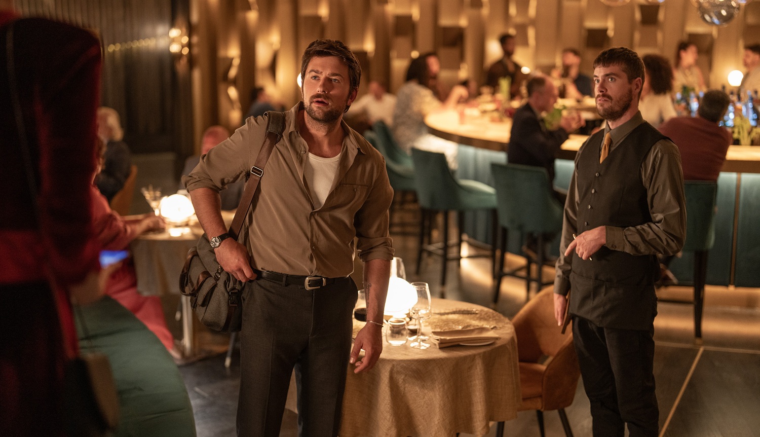 Jenseits der Textnachrichten wird eine gewisse visuelle Narrative ebenso gefüttert. Kameramann Marc Spicer und Produktionsdesignerin Susie Cullen lassen den zentralen Handlungsort – das schicke Edelrestaurant – in einem erinnerungswürdigen Licht erstrahlen. Die Intention, viele Elemente am verspielt-geriffelten Wand-Dekor unruhig und beängstigend wirken zu lassen, geht am Ende auf und der Ort bekommt einen eigenen Charakter. Ähnlich wie in „Non-Stop“ und den nicht-offiziellem Nachfolger „The Commuter“, geht auch bei „Drop“ in den letzten 10 Minuten nicht weniger die Post ab – nur eben weder in einem Flugzeug, noch in einem Zug; schließlich ist es kein erfolgreiches erstes Date, wenn der Ort des Dîner zum Abschluss nicht in Schutt und Asche liegt.